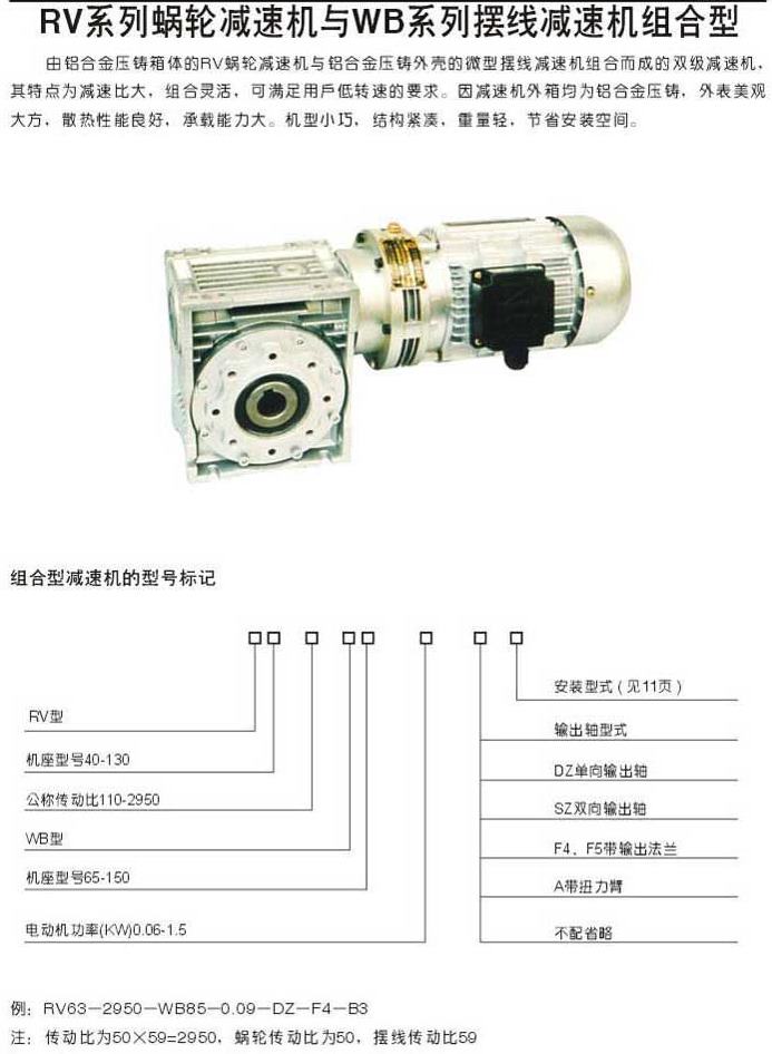 RV系列蝸輪減速機與WB系列擺線減速機組合型型號表示方法