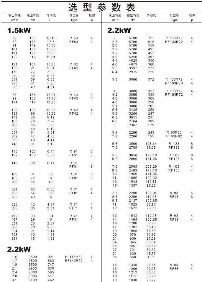 選型參數表1.5kW(續),2.2kW