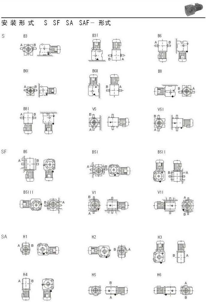 安裝形式S,SF,SA,SAF的形式